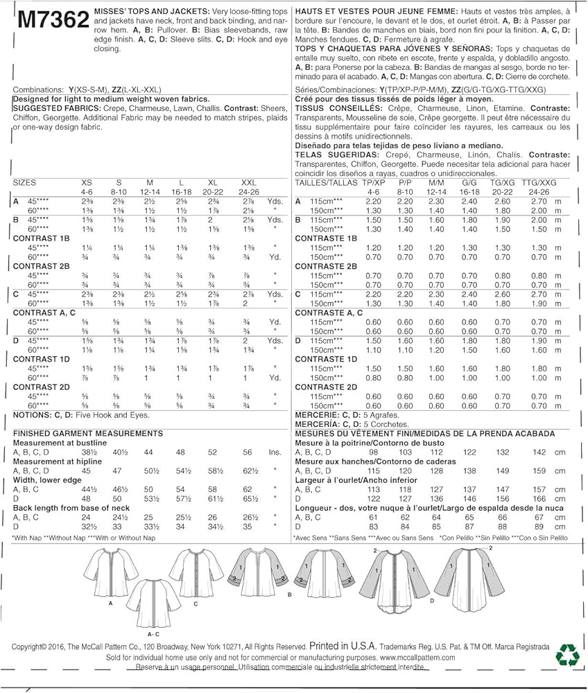 Amazon Com Mccall S Patterns M7362 Misses Raglan Sleeve Tops Jackets Y X Small Small Medium Arts Crafts Sewing